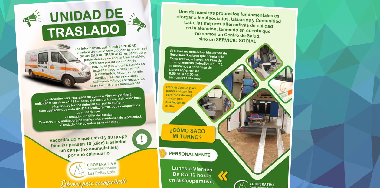 Les informamos, que nuestra entidad brindará un nuevo servicio, con la modalidad de UNIDAD DE TRASLADO, es decir, para pacientes que se encuentren estables, pero que por su condición ...